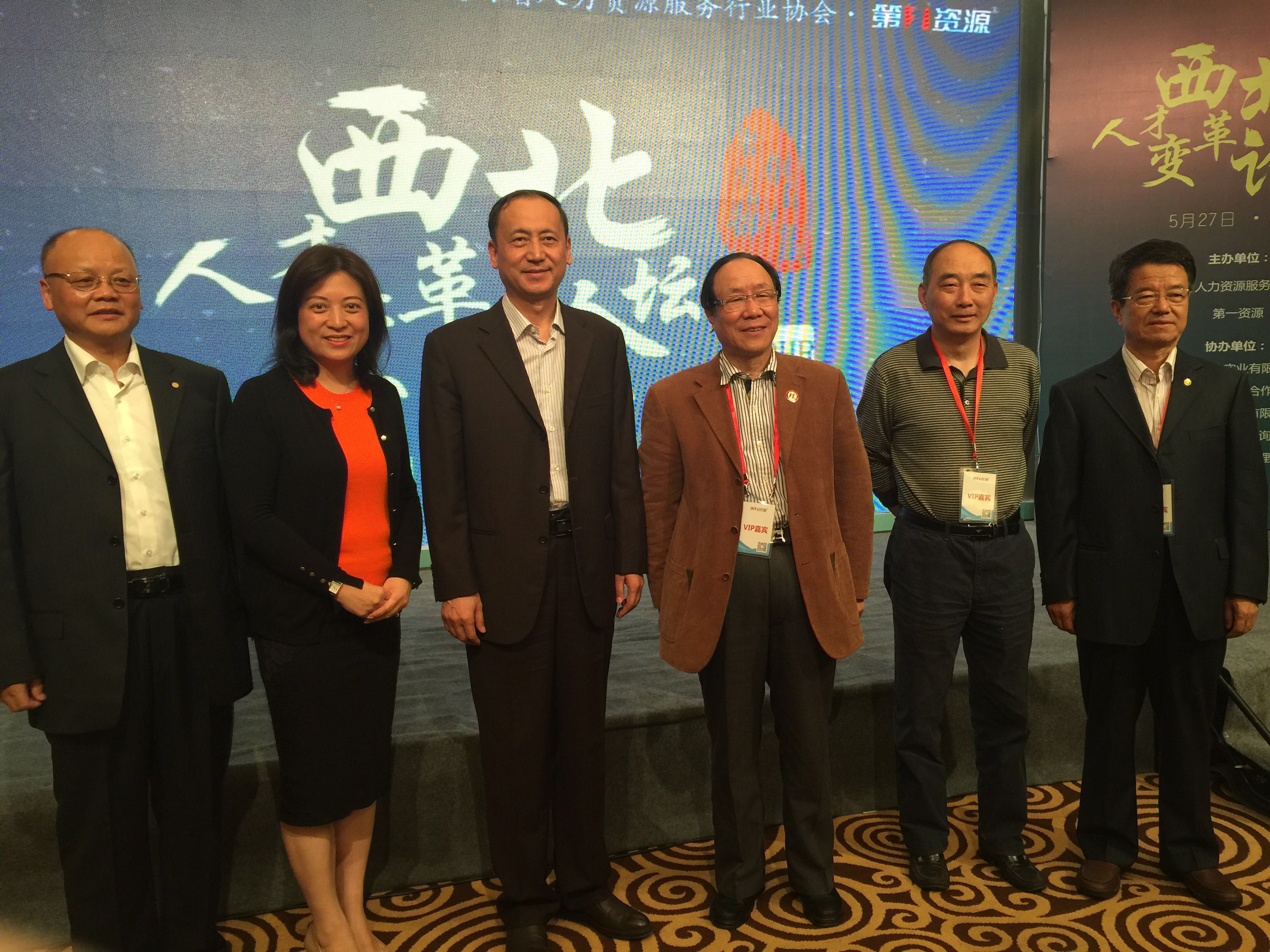 陕西省各级领导出席了本次论坛,并给予了高度评价。上图从左至右分别是:陕西省人力资源服务行业协会副会长、秘书长,陕西省人才交流中心副主任 陈力平先生,第一资源集团创始人、董事长兼总裁 刘红女士,中国西安人才市场管委会办公室主任、陕西省人才交流服务中心主任 刘鹏程先生,全国省级人力资源服务行业协会联席会 名誉会长 杨宝珊先生,中国人才交流协会副会长、陕西省人力资源服务行业协会名誉会长 李田先生,陕西省人力资源服务行业协会会长 刘景民先生。