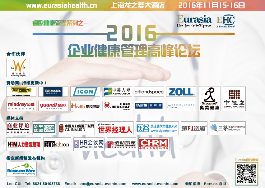 关于“2016企业健康管理高峰论坛”的更多消息,请至大会官网www.eurasiahealth.cn