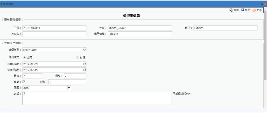 例如:员工想要在周五请假15:00-17:30.共2.5小时,在系统内填完申请单时,发现根据公司请假政策(所有请假必须以一小时为单位),系统「调整」字段内自动把时数调整为3个小时。员工最终决定请假15:30-17:30 两小时。一方面,企业制度得以遵从,方便员工按规则请假,另一方面,员工通过系统清楚了解企业制度,并合理安排工时请假,避免了劳务纠纷,维护了和谐的劳资关系。