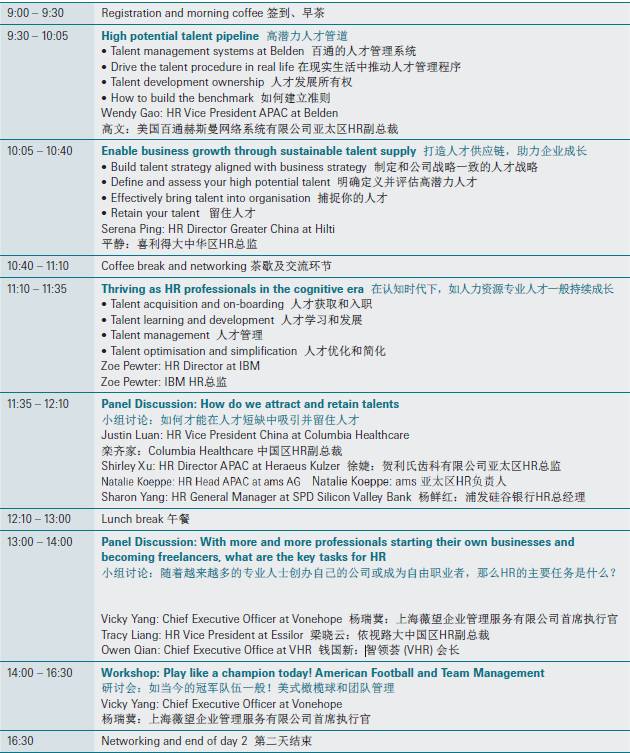 本次峰会汇聚了来自在ams、百通赫斯曼、Columbia Healthcare、陶氏化学、依视路、瀚纳仕、喜利得、IBM、Nexeo Solutions、尼尔森、浦发硅谷银行、蒂森克虏伯电梯、智领荟和薇望等企业及机构的专家们及HR高管们一同创新适合自身发展需要的管理战略,以实现人才的高效培养。